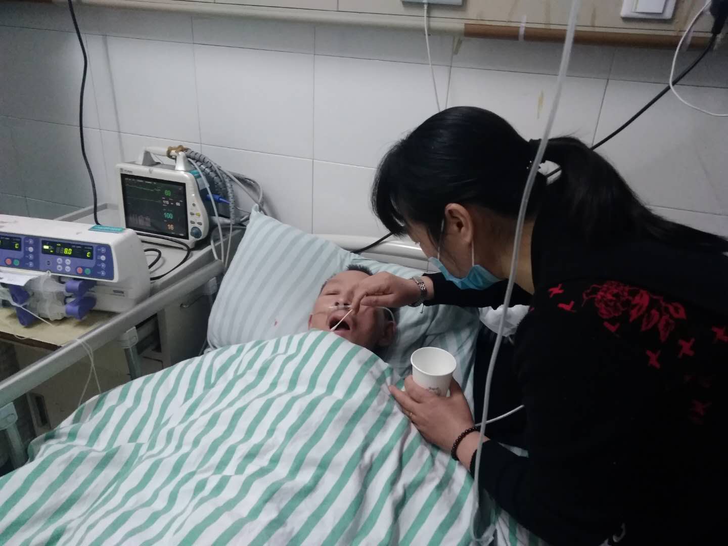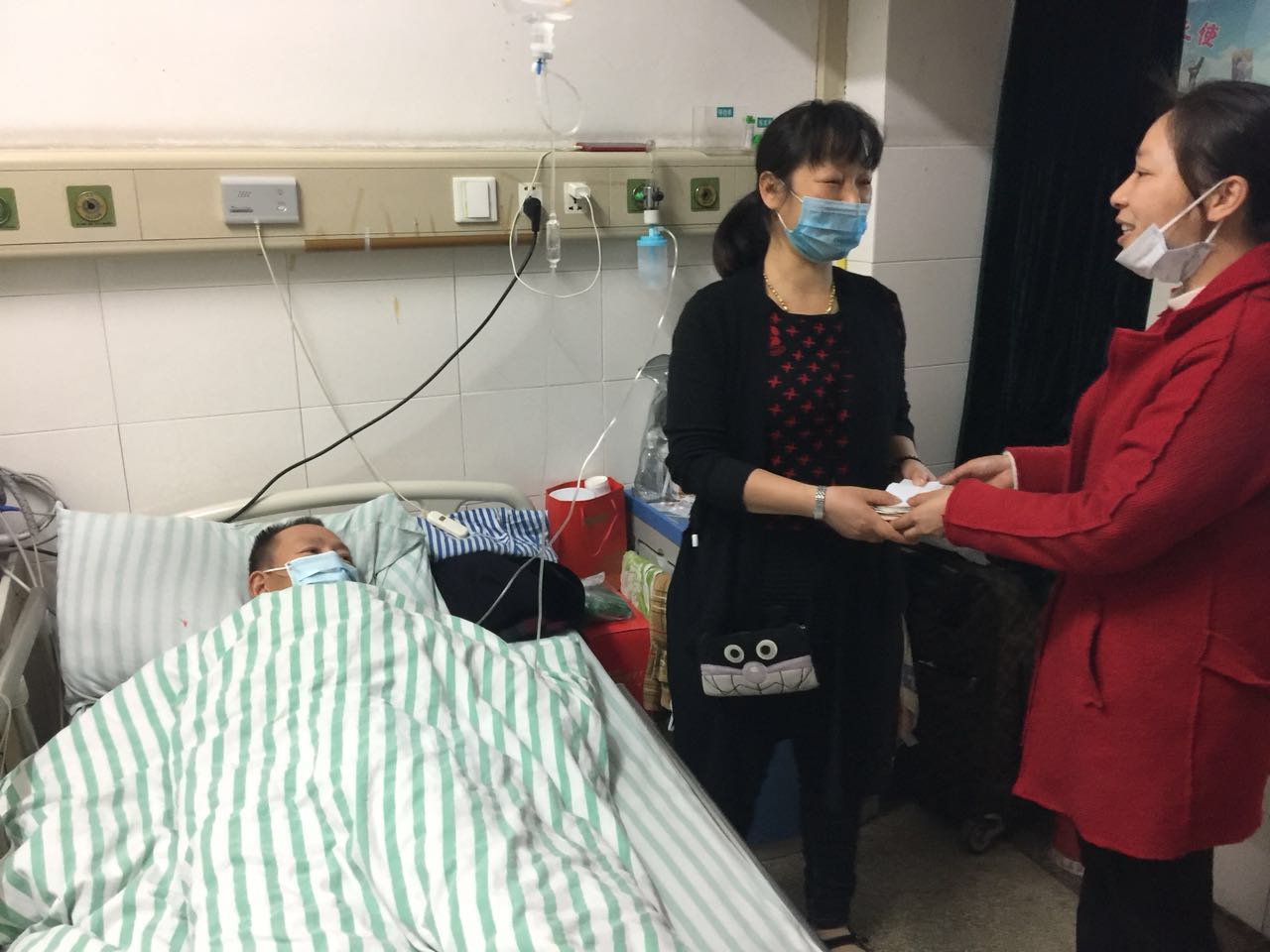 3月26日(rì),17C.COM工會主(zhǔ)席蔣俊、行政部林梅、員工汪明(míng)富帶著17C.COM所有(yǒu)員工的愛心來到醫院看望。薑偉文正在照料病床上的愛人,並發症引起口角潰瘍無法(fǎ)進食,每天24小時隻能靠鹽水維持,身形消瘦,身體虛弱,昔日150斤的錚錚硬漢,如今隻有110斤了,讓人無不動容。