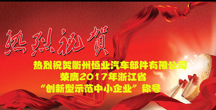 熱烈祝賀衢州恒(héng)業汽車部件有限公司榮膺2017年浙江省“創(chuàng)新型(xíng)示(shì)範中小企業”稱號 [2017-12-02]浙江(jiāng)省創新型示範中小企業由浙江(jiāng)省經濟和信息化委員會(huì)評(píng)選認定,旨在通(tōng)過評選出一批在...