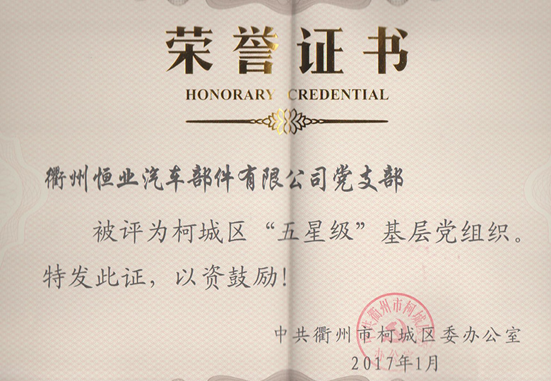 2017年1月榮獲柯城區“五星級”基層黨組織稱號